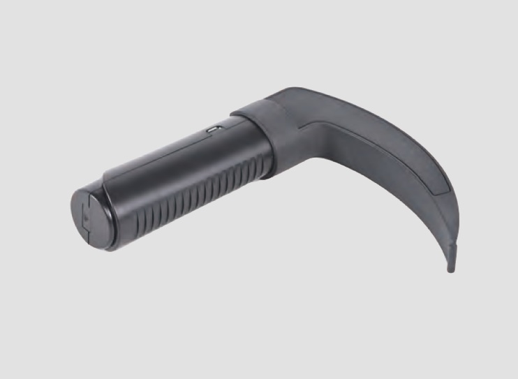 Laringoscopio de adulto para la práctica de intubación en simuladores. El laringoscopio cuenta con una lampara LED y una cámara para brindar imagen en tiempo real. El simulador se enlaza a su celular o tableta para proyectar la imagen en HD.