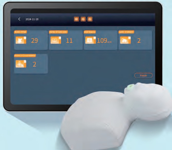 Simulador de torso para la práctica de RCP que brinda retroalimentación en tiempo real sobre la calidad de las compresiones y ventilaciones. El simulador se enlaza a la aplicación descargable a su celular o tableta. Estos maniquíes ligeros y resistentes ofrecen una herramienta asequible para el entrenamiento en RCP en cualquier momento y lugar, con toda la calidad y el realismo que esperas de la industria de la simulación médica. No requieren montaje ni mantenimiento, y además cuentan con un torso superior con cremallera que facilita la inserción de bolsas pulmonares y accesorios desechables.